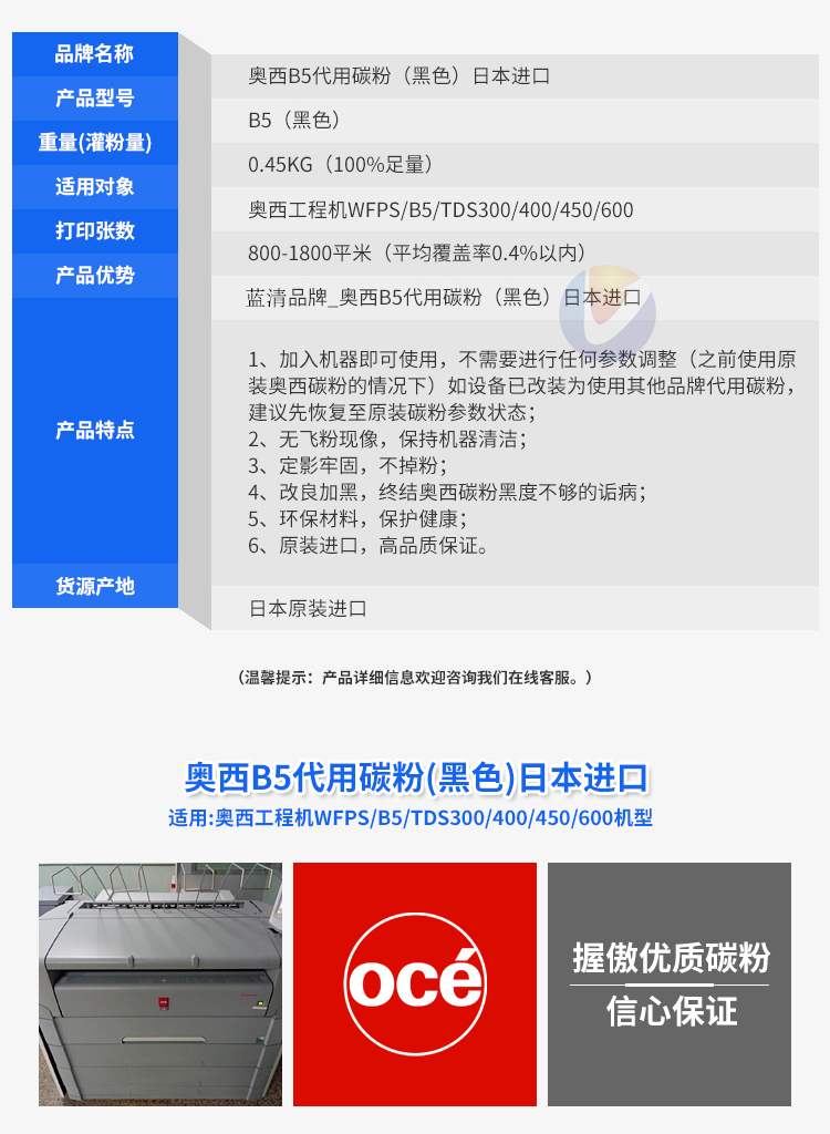 奥西B5代用碳粉黑色工程机WFPS TDS300 400 450 600碳粉日本进口